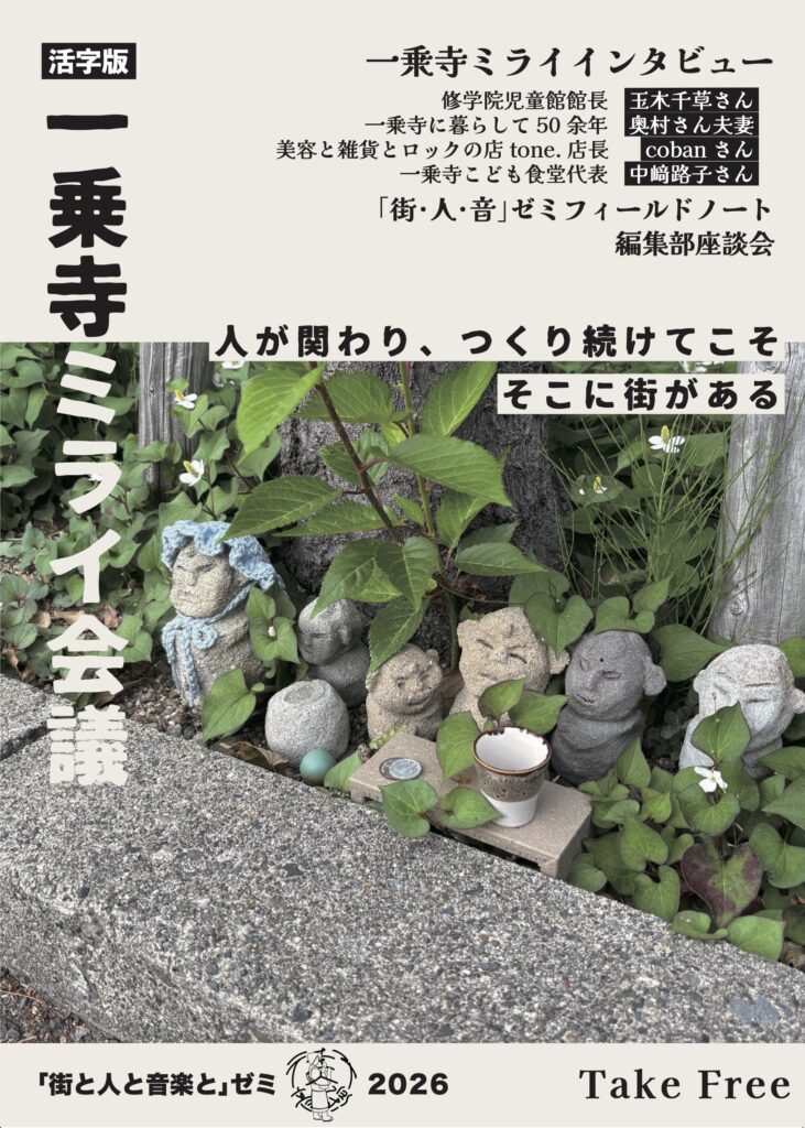この冊子は、一乗寺への思いを横につなげる試みの出発点であり、そこに至る途中経過でもあります。ここに収められた言葉や視点が、これからの一乗寺を考えるための小さな手がかりになればと思っています。