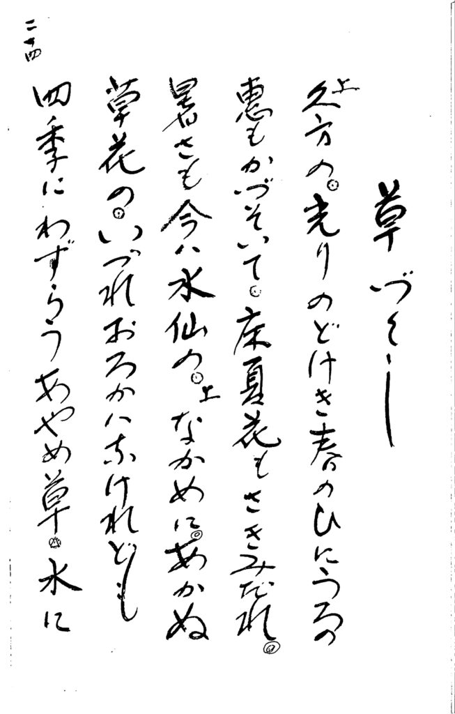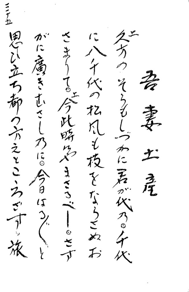 - 「家元」と言うのではなく、各曲がそれぞれ先輩をたずね、口うつしに習い、それを毛筆で自分なりに速記するので、部分的に、言葉や助詞の使い方に間違いがある。