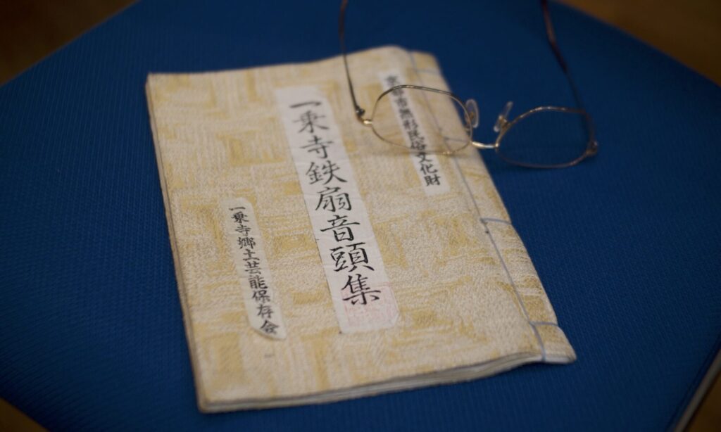 「一乗寺鉄扇音頭」は、念仏踊りを源流とする、地域芸能の盆踊り。笛や太鼓など鳴物などの雑音はなく、声だけで奏でられる。五七調の独特な節回しが特徴であり、あらゆる部分で韻を整えられたり、緑語・掛け言葉を使ったり、古歌・古事が取り入れてあり修辞的に面白く作られている。全体的に静かで捉えどころのない音頭である。