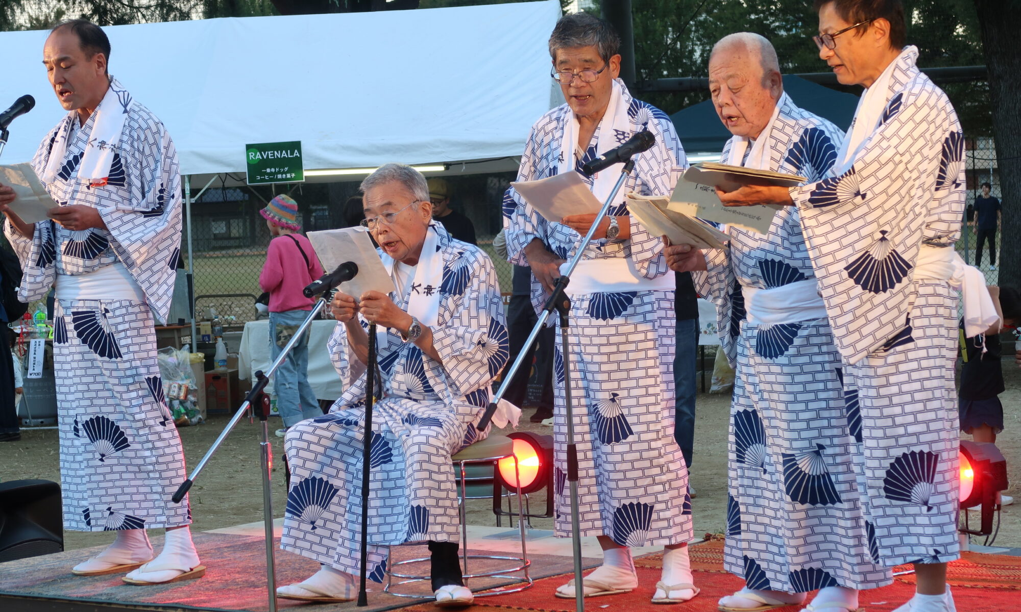 - ただし、一部文献には二組に別れて音頭を取るとの記述もある